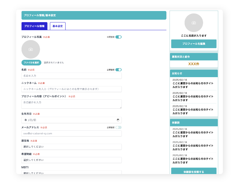 また実際にAIキャバ求で体入をしたキャストの方の体験談などの生の声も掲載しておりますので、先輩方の体験を参考にして、安心して体入へお申し込みいただけます!