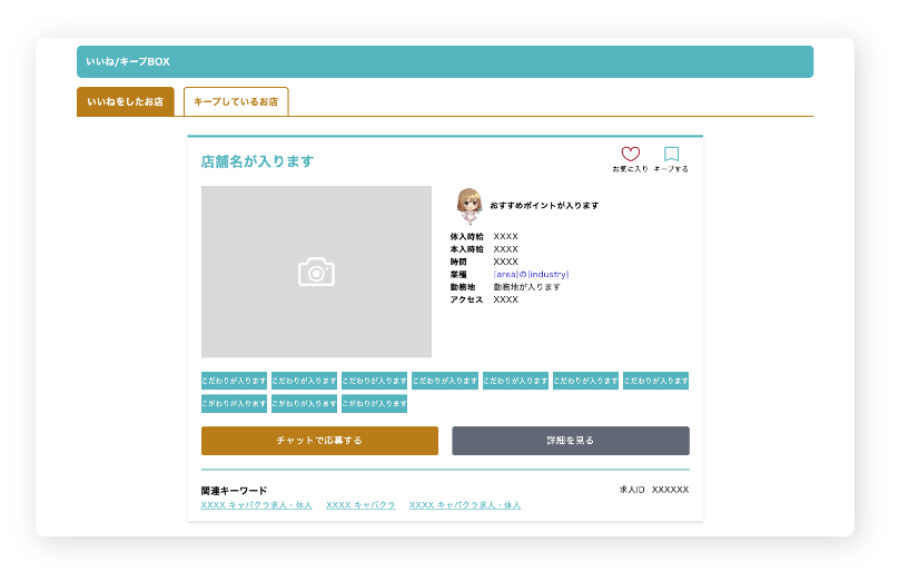 気に入った店舗はお気に入り・キープ登録して、いつでも応募できる状態にしておこう!