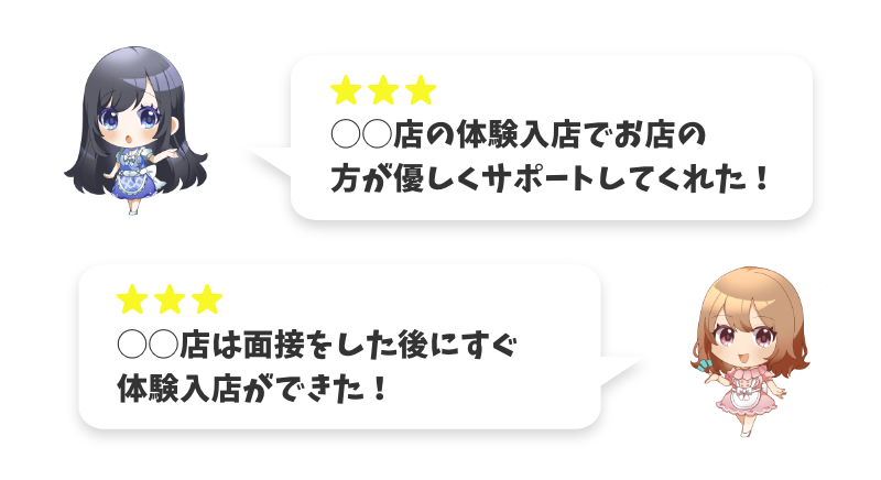 体入体験談から体入の流れやお店の雰囲気もチェックできるので、そちらも参考にしてみてくださいね!