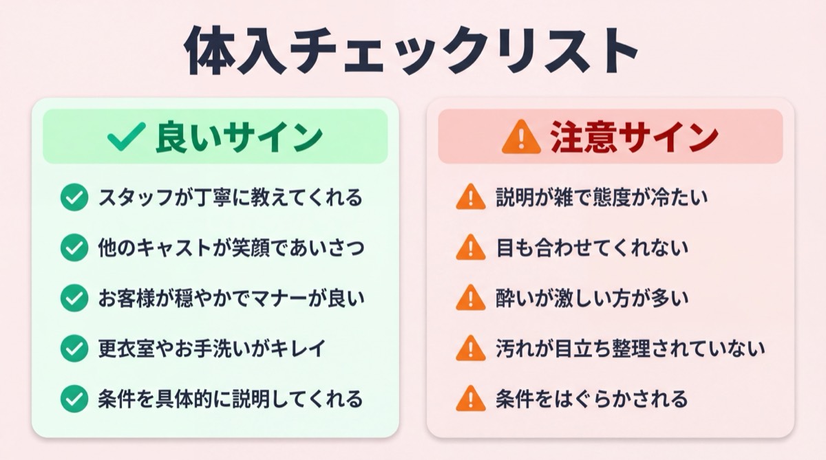 - 体入(体験入店)でチェックすべきポイント